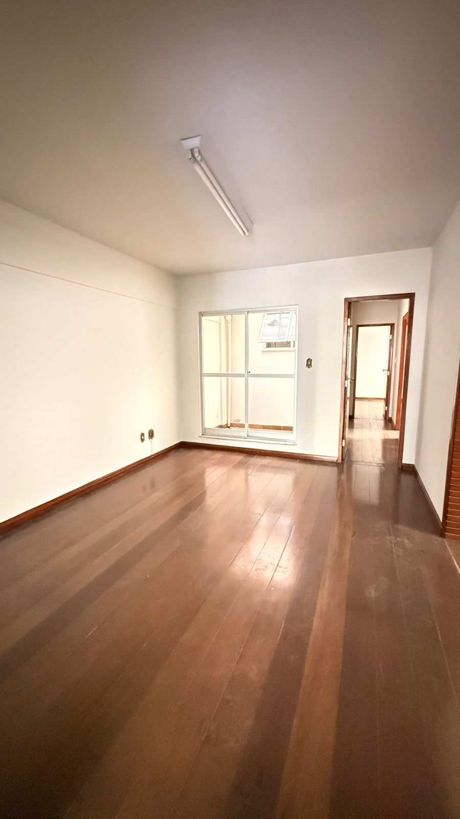 Apartamento com sala de estar sala de jantar e sala de TV, jardim de inverno, 3 quartos sendo 1 suíte, todos com armários, banheiro social, cozinha, lavanderia grande e dependência completa de empregada.