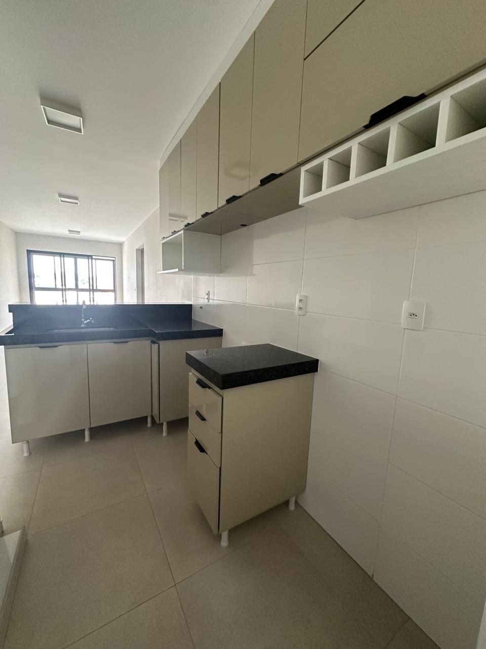 Apartamento com 02 quartos sendo um suíte, sala ampla com varanda, cozinha com armarios planejados, área de serviço, banheiro social, 01 vaga de garagem.