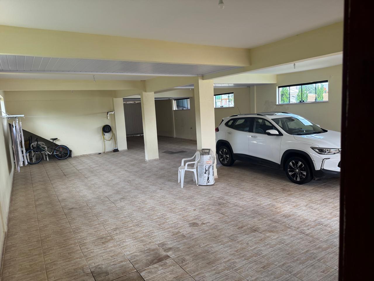 Garagem toda em piso com espaco para 8 a 10 carros e pode tambem ser usada como salao de eventos. um quarto e um banheiro