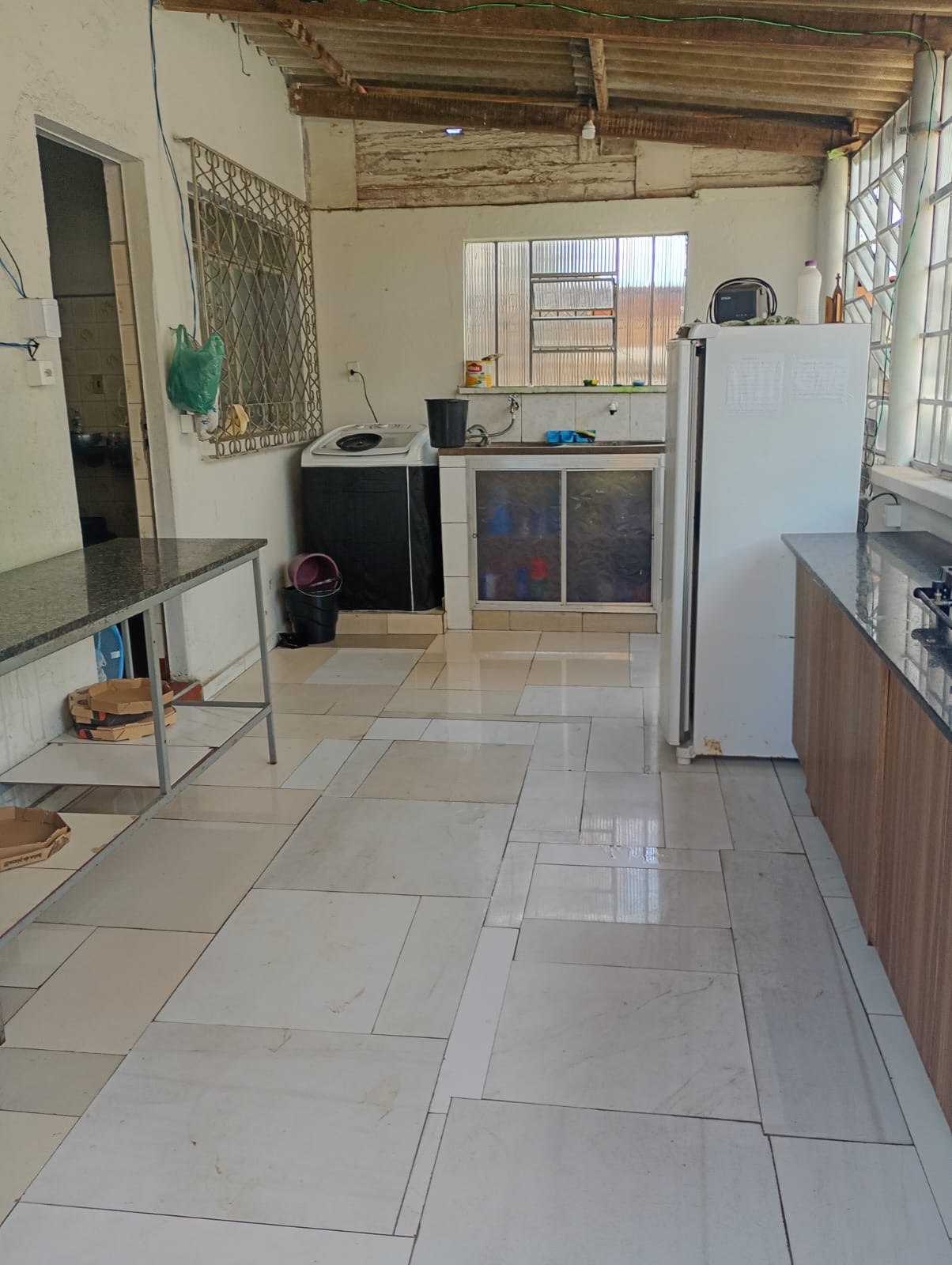 2 quartos, sala, cozinha, banheiro, área de serviço, garagem grande