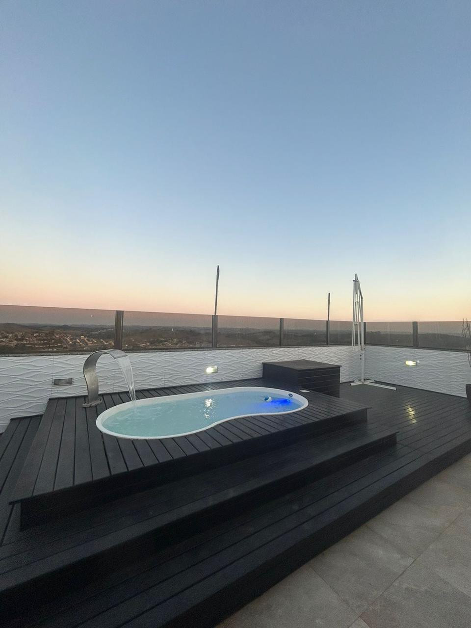 Terraço área fechada e área aberta com piscina pequena