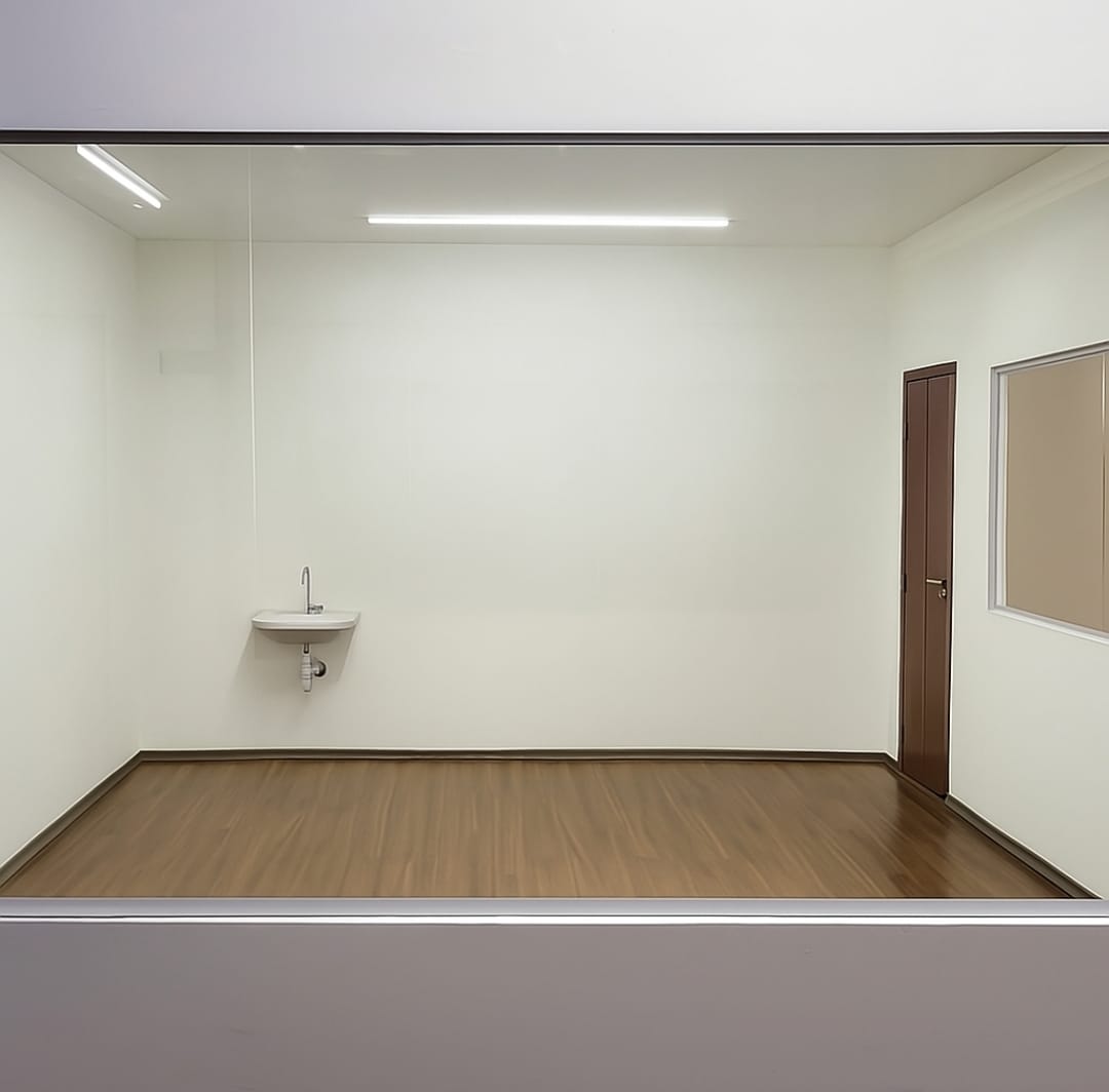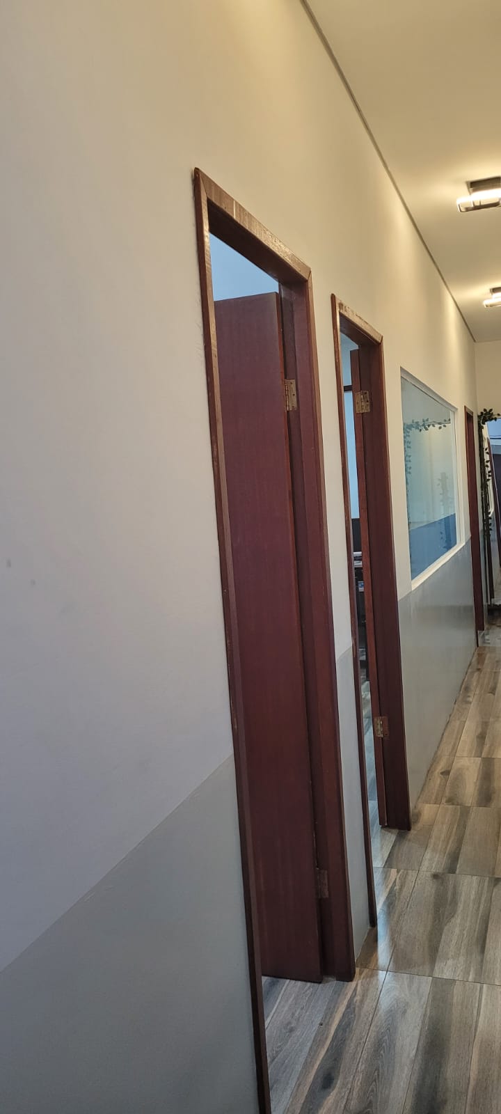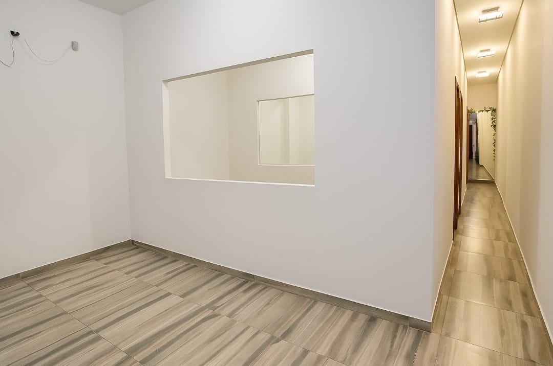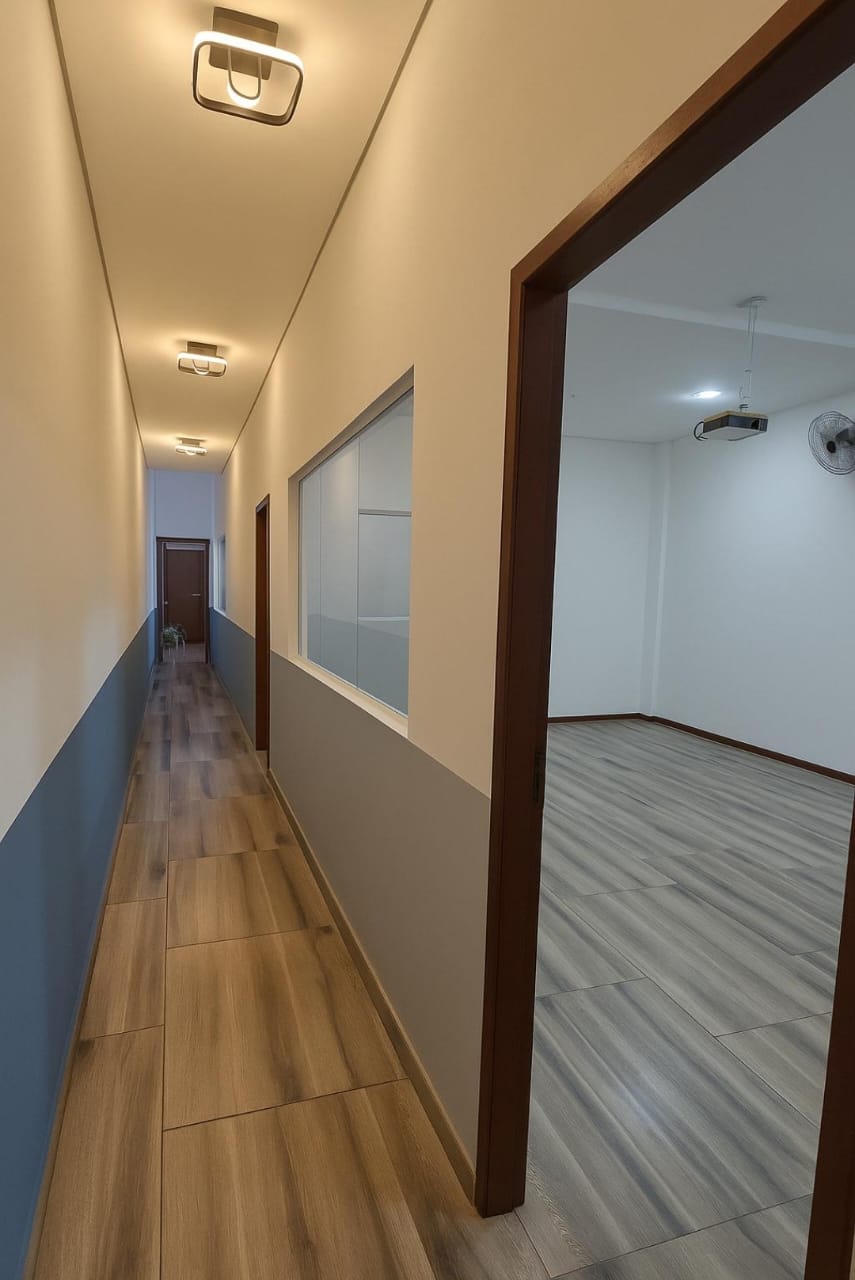 Espaço com 03 salas, sendo 01 recepção e 02 salas independentes com porta e janela ampla de vidro. Podendo fazer uma 4ª sala aos fundos. Entrada e saída de água. Piso novo e rebaixamento em gesso. Luz de led com 3 opções de cor no corredor.