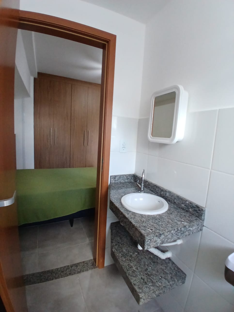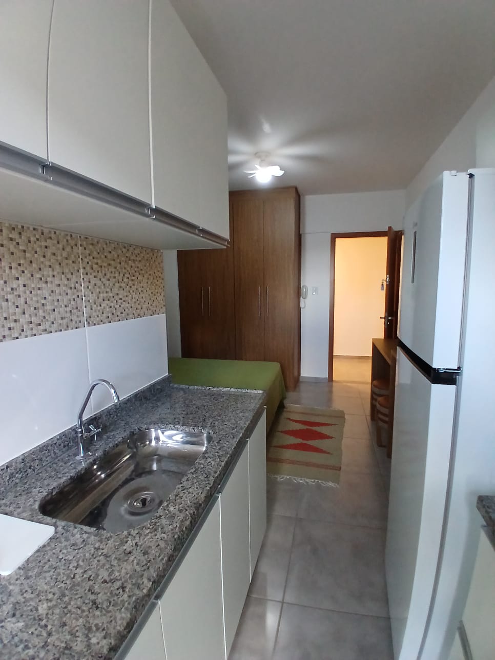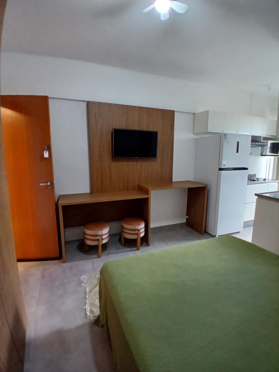 📍 Studio com quarto conjugado à cozinha, varanda, banheiro e área de serviço. Espaço bem distribuído, ideal para quem busca funcionalidade em um ambiente compacto.